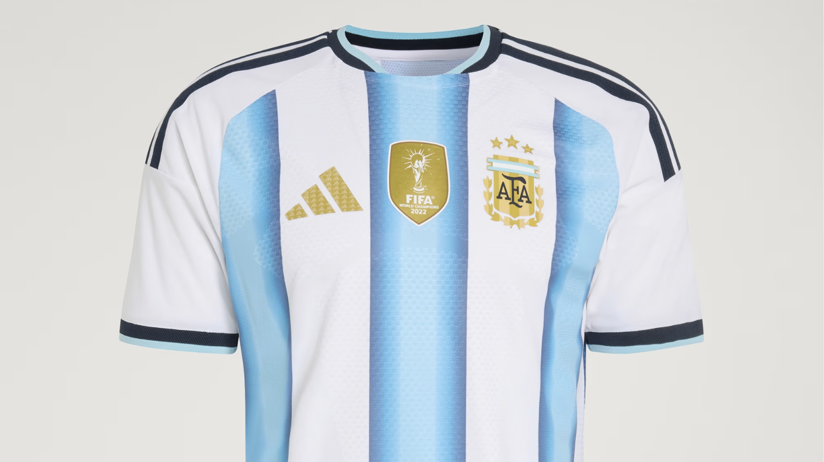 Het shirt heeft de klassieke look waar Argentinië wereldwijd om bekend staat: witte en lichtblauwe verticale strepen. De kleuren zijn iets verfrist met een moderne twist, onder meer door het gebruik van de tint “Icey Blue”. Dit zorgt voor een frisse, sportieve uitstraling, zonder afbreuk te doen aan het traditionele karakter van het tenue.